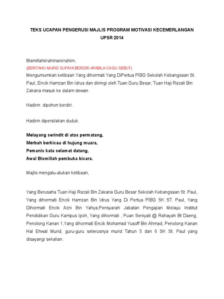 Teks Ucapan Pengerusi Majlis Program Motivasi Kecemerlangan Upsr Pdf