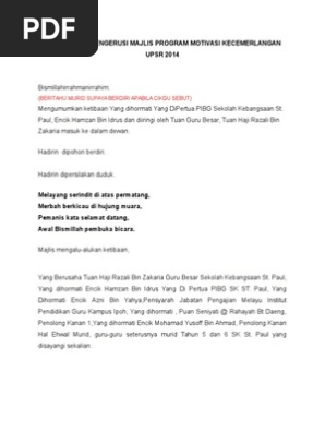 Teks Pengacara Program Motivasi Gegar Upsr Pdf