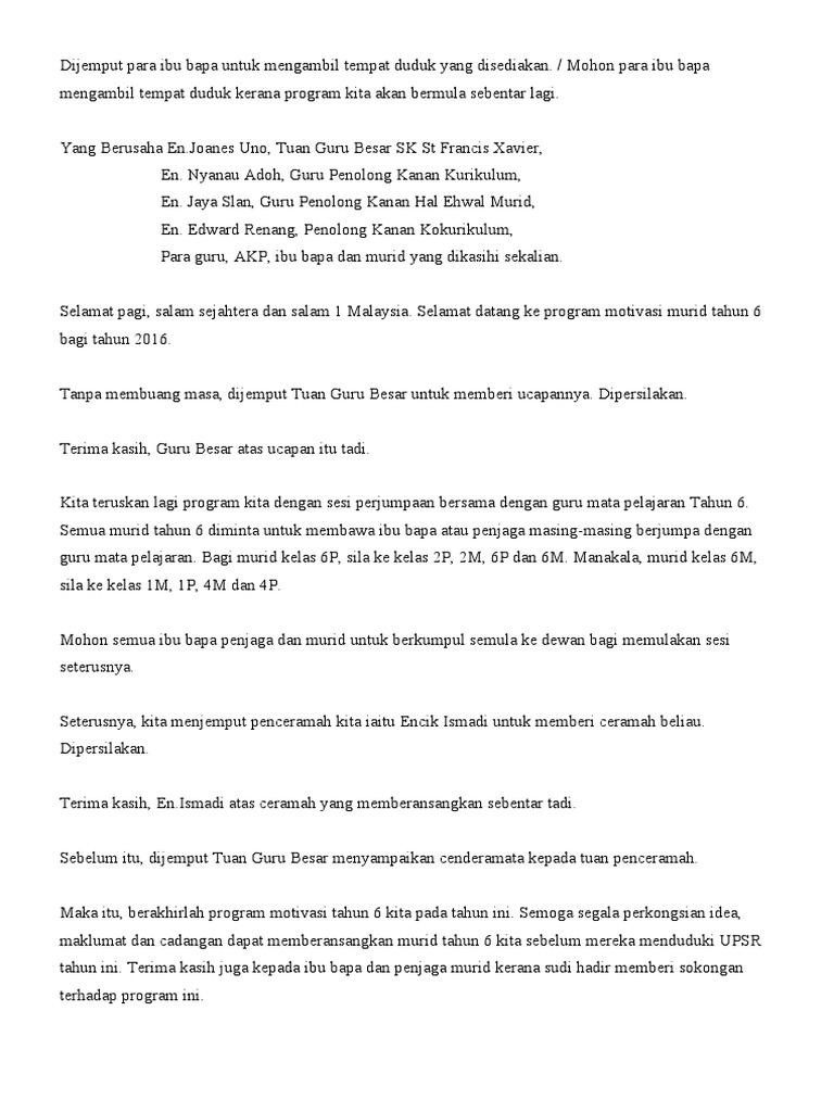 Teks Ucapan Program Motivasi Tahun 6 Pdf